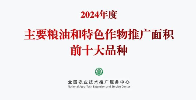 据了解,本次发布的信息是根据《中华人民共和国统计法》和农业农村部调查统计制度,基于全国农技中心负责的中国农作物种业统计所得。主要粮油和特色作物推广面积前10大品种是根据各县统计的2024年度面积达0.5万亩以上的品种汇总后进行排序所得。