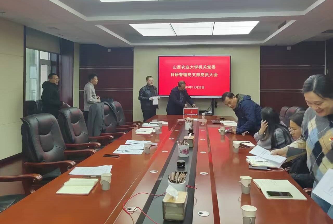 杨万仓代表上届党支部委员会作工作报告。会议通过了上届党支部委员会工作报告、《科研管理党支部党员大会选举办法》草案新一届党支部委员会委员名额和候选人预备人选名单、监票人名单。大会选举产生了支部委员,分别是杨万仓、辛艳伟、张一弓、张敬忠。